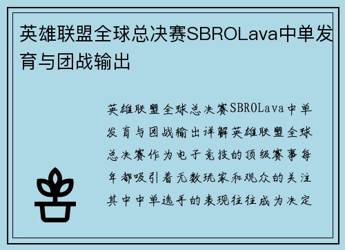 英雄联盟全球总决赛:SIG战队Neny上路单杀惊艳全场 在英雄联盟全球总决赛的激烈赛场上,SIG战队的上单选手Neny凭借一次精彩的上路单杀,瞬间引爆了观众和粉丝的热情。这一关键时刻不仅展示了Neny的个人技术实力,还为SIG战队在比赛中赢得了宝贵的优势。本文将深入分析这一单杀事件的背景、过程、战术意义以及对比赛的影响,帮助读者全面了解这一精彩瞬间的细节。通过详细的介绍,我们将探讨Neny的英雄选...